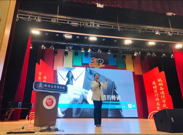 讲座中,主讲人从简历设计、贴合岗位需求围绕亮点挖掘、增强简历竞争力、打造个人职业品牌四个层面进行分析,为2022级同学提供了清晰的简历制作思路,有效助力学院推进毕业生高质量就业工作。