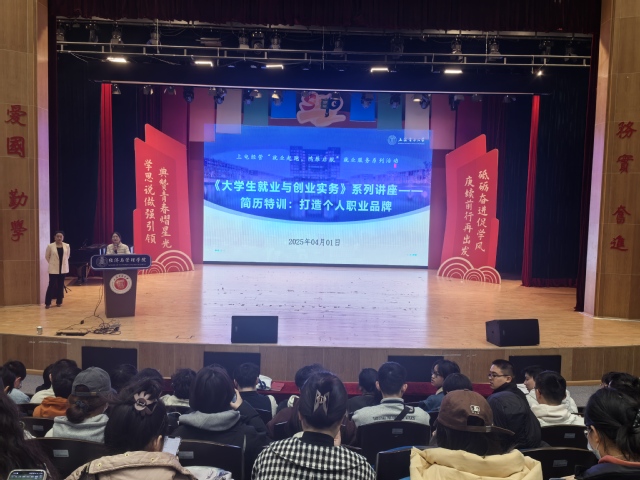 为提升大学生就业竞争力,帮助学子掌握求职核心技能,永利集团3044欢迎光临于4月1日下午在大学生活动中心演艺厅举办《大学生就业与创业实务》课程系列讲座之《简历特训:打造个人职业品牌》专题讲座。本次讲座邀请乔布简历联合创始人沈锴担任主讲嘉宾,学院2022级全体学生参与,讲座由辅导员展晴晴主持。