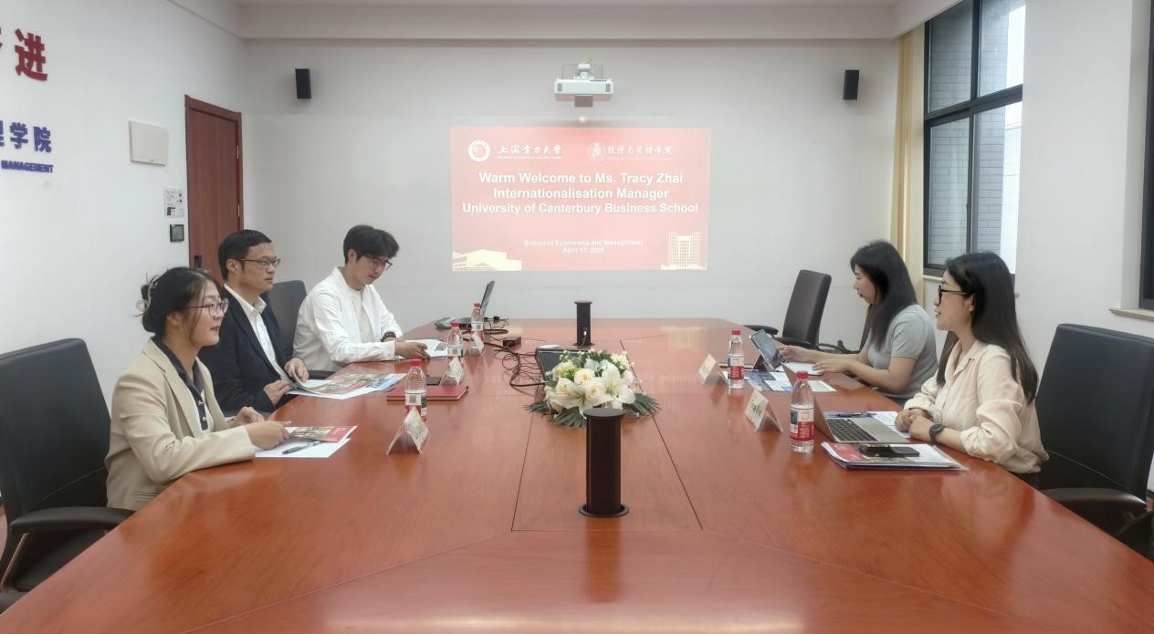 4月17日,新西兰坎特伯雷大学商学院国际事务经理Tracy Zhai一行到访永利集团官网,学院党委副书记、常务副院长潘华携辅导员蒋寅、外事秘书吕嘉丽出席座谈会,双方就深化学科专业人才培养合作展开务实交流。