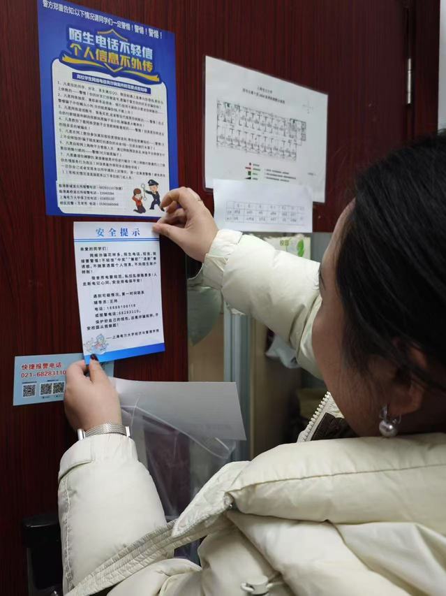 针对学生宿舍这一重点区域,学院组织辅导员和学生志愿者深入每间寝室,在门后位置张贴防诈骗安全提示贴纸,内容涵盖“刷单诈骗”“冒充客服”“虚假贷款”等常见骗局识别要点,确保学生随时可见、随时学习。