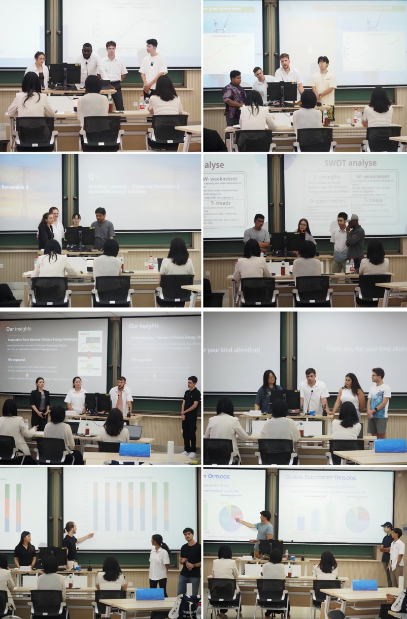 在商业演示与答辩环节,各参赛队伍基于模拟经营成果,深入分析市场环境变化、环境保护约束及公司战略,进行商业演示并接受评委质询,充分展现其商业洞察力、决策能力和团队协作水平。其中,FATG团队凭借其清晰的市场导向策略、清洁能源布局的远见以及扎实的数据分析和应变能力,表现尤为亮眼,赢得了评委组的高度赞誉。