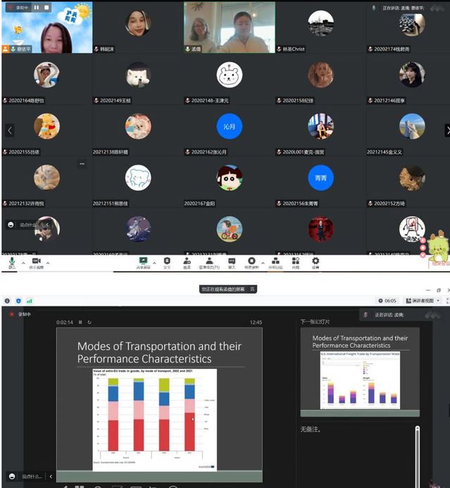 4月6日,学院管科系邀请了挪威东南大学副教授孟倩及其助教琳娜以腾讯会议形式为永利集团官网物流管理专业2020和2021级、国际经济与贸易专业2020级、留学生2020级学生共计70余人开展以“国际供应链中的运输”为主题的讲座。讲座内容主要包括:运输在供应链中的作用、各种运输方式及其绩效特点、基础设施与政策以及运输网络的设计。讲座最后,参与师生与两位主讲人就未来的运输方式等主题积极展开交流互动,反响热烈。
