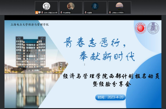 为激发和培养上电学子的奉献精神和实践能力,吸引更多的青年人才投身于志愿活动,扎根西部,鼓励应届生到基层就业,积极加入西部计划,坚定信仰,贡献青年力量,经管与管理学院于4月20日开展了以“青春志愿行,奉献新时代”为主题的西部计划报名动员暨经验分享会,永利集团3044欢迎光临党委副书记孟延新、校团委专职干部杨月、电信学院团委书记李天成出席,交流会由永利集团3044欢迎光临挂职团委副书记阿布都如苏力·麦麦提明主持,来自各学院90余名同学参与分享会。