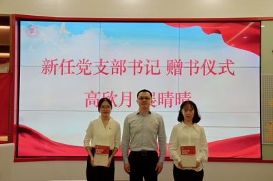 随后,进行新任党支部书记赠书仪式。学院党委书记张艺为展晴晴、高欣月送上学习书籍。两位新任书记表示,在接下来的工作中,将积极推动支部高质量发展,提高政治能力,增强政治觉悟,统筹谋划支部党建工作,将学生党支部工作越做越好。