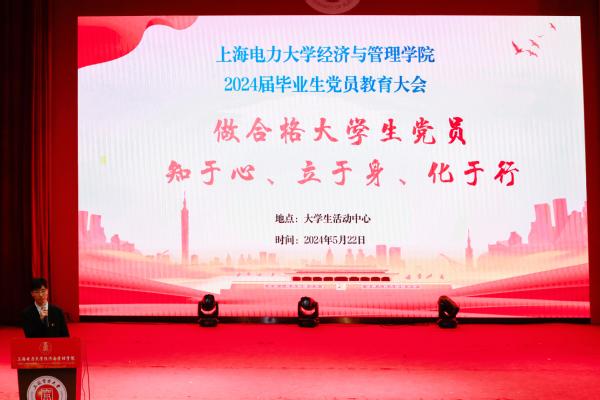 学院党委书记张艺为毕业生党员作主题为“党纪学习要知于心、立于身、化于行”专题报告。张艺强调了党纪学习教育的重要性,寄语毕业生党员要做到学“深”条例内容,在“识变从宜”中知纪于心;要做到悟“透”主旨要义,在“心知其意”中立纪于身;还要做到用“活”规定要求,在“反躬自省”中化纪于行。他充分肯定了毕业生党员们在校期间努力拼搏的汗水,刻苦学习、锐意进取的精神,无一不彰显了作为上电学子牢记“爱国、勤学、务实、奋进”校训的风采。同时代表学院祝愿毕业党员同学们前程似锦,随时保持与母校的联系,用自己的成功与发展反馈母校。