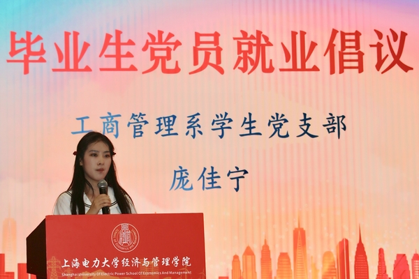 其次,党员代表庞佳宁作毕业生党员就业倡议,向全体2024届毕业班党员发出五点倡议:第一要提高思想政治站位,增强自身党性修养;第二要发挥自身优势,做带动就业先锋;第三要了解形势政策,做宣传就业先锋;第四要增强自立自信、保持积极乐观心态;第五要时刻提高警惕,强化就业防骗意识。她表示要将个人奋斗的“小目标”融入党和国家事业的“大蓝图”,用亮丽的青春风采和豪迈的青春激情将青春华章写在祖国大地上,做到“一个党员就是一面旗帜,一个干部就是一个堡垒”的先锋示范作用。