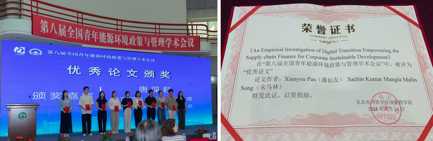 7月13日至14日,由中国“双法”研究会能源经济与管理研究分会、东北电力大学联合主办的第八届全国青年能源环境政策与管理学术会议在东北电力大学召开,永利集团官网教师潘仙友及多名硕士研究生应邀参加会议并在平行论坛环节做主旨演讲。