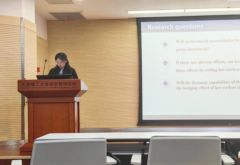 永利集团官网硕士研究生魏颖、王烜在潘仙友老师的指导下参加了此次会议,并在平行会议上做了题为《Corporate Green Investment under Environmental Uncertainty Constraints in China: the Hedging Effect of Low-carbon Targets》的主旨报告。该研究深入探讨了低碳目标如何在不确定环境性约束下促进企业绿色投资,并揭示了低碳政策对企业绿色投资决策的影响机制。该研究指出,环境不确定性对企业绿色投资具有不利影响,低碳目标的设定可以防止这种不利影响并促进企业绿色投资。当应用于国有企业和成熟企业时,低碳目标对两者具有调节作用,且由于企业动态能力不同,低碳目标具有异质性的调节作用。