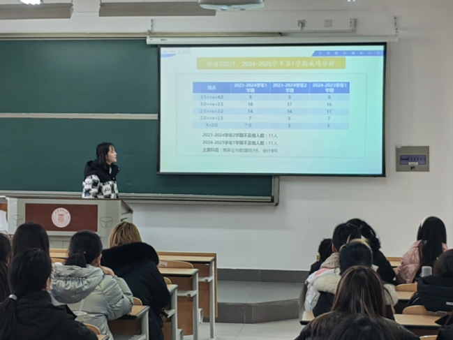 2024级新生的主题班会中,辅导员重点对学业成绩分析和学业指导,以专业为单位解读了所带专业上学期的平均绩点、挂科情况,并根据挂科情况以及宿舍分布、挂科名录等分析了学业上所存在的问题。指出除了学业基础问题,其次是学业态度问题,从成绩分析出发与学生制定了大一下学期计划,如班级内部建立帮扶小组等。
