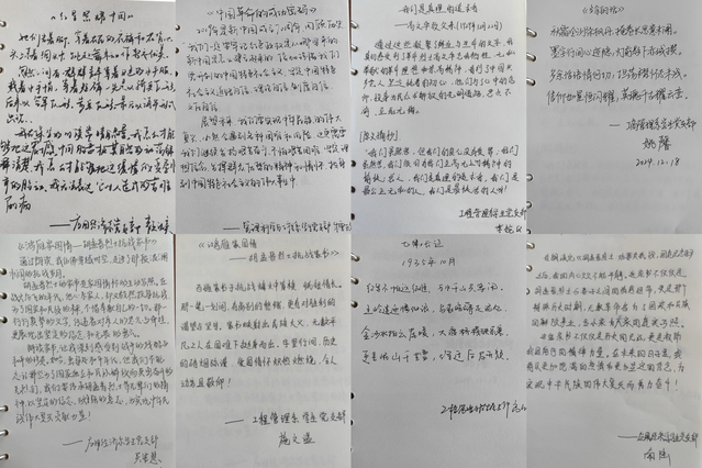 接着,大家在纪念册上留下感言,字里行间流露出青年一代的坚定信念和对未来的美好向往。鸿雁宣讲团成员李婉怡感慨:“通过朗诵与分享,让我对红色经典的理解更加深刻,未来我也将努力成为党的声音的传播者,让更多同学了解红色经典,传承红色精神。”
