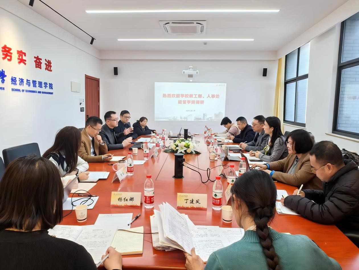 为深入调研探讨教师思想政治工作和人才人事工作,促进我校相关工作的开展。3月19日,学校教工部部长兼人事处处长李永斌、副处长诸俊、副处长任洪波等一行莅临学院开展专题调研交流。学院党委书记张艺、常务副院长潘华、副院长胡伟,党政办主任万叶玲、组织员周颖等参加了会议。